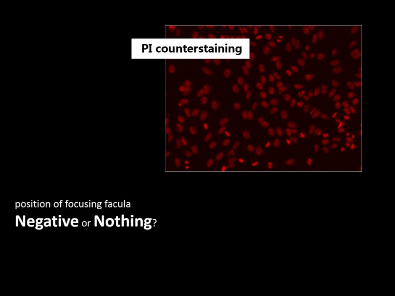EUROPattern拍出的圖片,共有三種。綠色通道,即與熒光顯微鏡拍出的圖片相同。紅色通道,細胞核經過碘化丙啶紅色復染,通過紅色通道獲取信息,不僅可以幫助尋找和識別細胞核和分裂期細胞,還可以避免可能出現的假陰性結果。紅綠疊加通道,可以清晰的觀察區分細胞核與細胞胞漿信息。