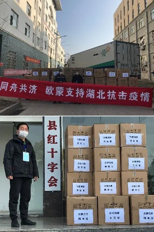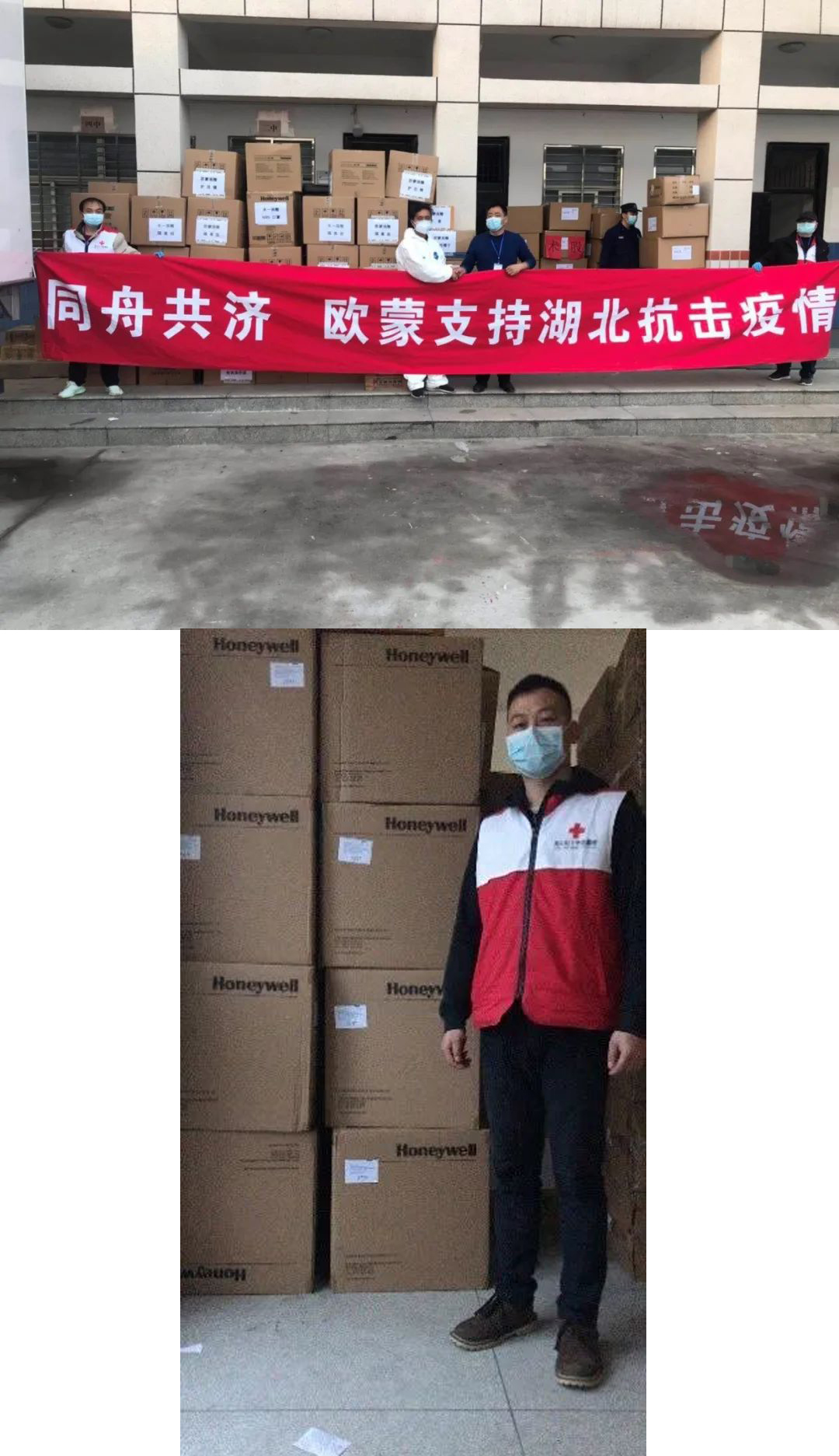 歐蒙一直心系湖北疫區,立即籌集防控物資。為了確保這批緊急籌備的防護物資可以在疫情防控中發揮最大功效,歐蒙進行逐縣、逐區的聯絡,根據疫區實際需求將物資進行合理配置,保障防控物資送達環境艱苦、防控關鍵的基層一線,與老區人民同舟共濟,共筑抗疫防線。