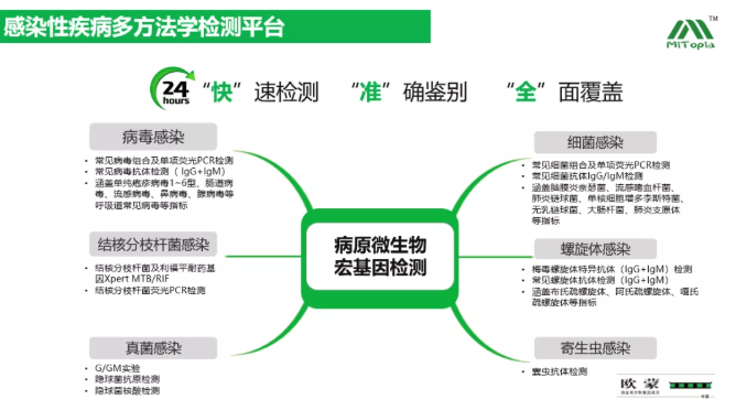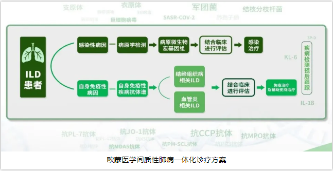 歐蒙醫(yī)學(xué)不僅可以為臨床醫(yī)生提供全面的免疫病因相關(guān)的血清學(xué)檢測項目,還可以提供感染病因相關(guān)的病原學(xué)檢測項目。周教授通過結(jié)合臨床中遇到的實際案例,為大家介紹了在間質(zhì)性肺炎患者人群中識別感染、明確感染原的重要性。mNGS是目前已被臨床醫(yī)生廣泛認(rèn)可的技術(shù),在病毒、細(xì)菌、真菌以及混合感染方面都具有明顯優(yōu)勢,敏感性遠(yuǎn)遠(yuǎn)優(yōu)于傳統(tǒng)的診斷方法。mNGS因其具備更加快速、更加全面的進行病原診斷的特點,更有助于臨床醫(yī)生更早期的靶向治療,進而提高其生存率。除mNGS技術(shù)之外,歐蒙還可以提供多方法學(xué)、多平臺的病原體檢測項目,以及間質(zhì)性肺病活動性及預(yù)后血清學(xué)標(biāo)志物的檢測,以此提供更準(zhǔn)確、全面的結(jié)果。