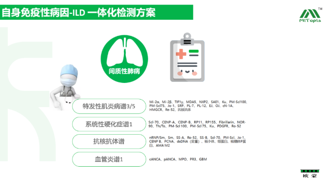 在免疫病因方面,周教授分別針對多種結(jié)締組織相關(guān)ILD(RA-ILD、SSc-ILD、SS-ILD、SLE-ILD、IIM-ILD和AAV-ILD)的臨床特點、風(fēng)險因素和診治要點逐一進行了介紹,并分享了抗MDA5抗體陽性的CTD-ILD患者疾病呈現(xiàn)快速進展的危重案例,說明血清學(xué)抗體檢測可為臨床醫(yī)生盡早明確疾病類型及預(yù)后判斷提供詳實的依據(jù)。