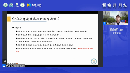 毛教授為論壇做了題為《新冠感染的診治》的精彩報(bào)告,重點(diǎn)闡述了新冠感染的診斷和治療的重要原則,這些診療原則有助于慢性腎臟病合并新冠感染患者更多獲益。新冠感染的診斷需依據(jù)流行病學(xué)、臨床表現(xiàn)、實(shí)驗(yàn)室檢查等方面的綜合分析,其中新冠病毒核酸檢測(cè)陽(yáng)性為確診的首要標(biāo)準(zhǔn)。新冠感染的臨床分型包括輕型、中型、重型和危重型。臨床需要重點(diǎn)關(guān)注重型和危重型高危人群。流行病學(xué)研究顯示,慢性腎臟病(CKD)患者屬于新冠感染的重型/危重型的高危人群,CKD5D患者(透析患者)新冠感染的發(fā)病率高于CKD非透析患者,CKD合并新冠感染死亡風(fēng)險(xiǎn)是非CKD患者的10-21倍。