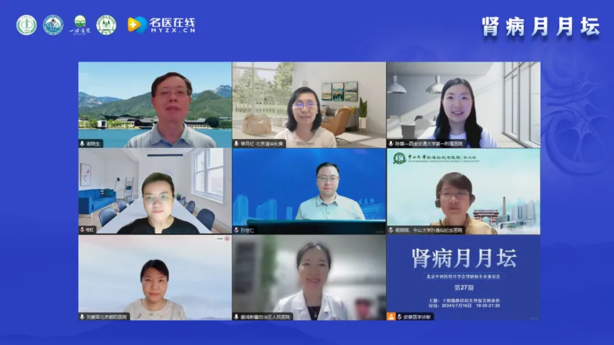 謝教授簡單介紹了“腎病月月壇”的歷史,“腎病月月壇”是在2022年5月疫情防控期間開始的線上學術交流活動,每個月第3周的周二晚上19:30-21:30開展,其形式是講座與討論相結合,非常受觀眾歡迎,每期都有一萬余人線上聽課;腎病月月壇每期一個主題,已完成的主題包含膜性腎病及其并發癥、風濕性疾病腎損害、遺傳性腎病的中西醫結合診治等。