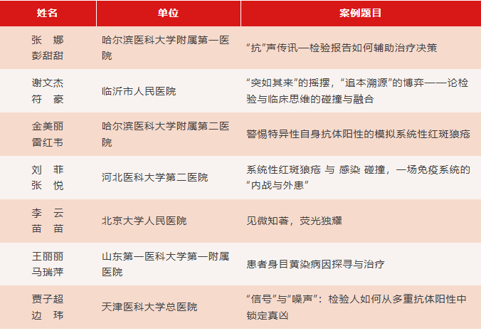 參與北區(qū)展示的18組案例涵蓋多臨床科室,案例分析深入、細(xì)節(jié)豐富,檢驗(yàn)人以實(shí)驗(yàn)數(shù)據(jù)為臨床決策“導(dǎo)航”,突顯出實(shí)驗(yàn)室檢測(cè)在自身免疫性疾病診斷中的重要價(jià)值。臨床醫(yī)生通過(guò)縝密的臨床思維破解診斷迷局,檢驗(yàn)與臨床協(xié)作默契,環(huán)環(huán)緊扣,生動(dòng)詮釋了檢驗(yàn)分析與臨床實(shí)踐的深度融合。